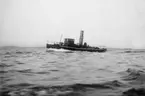 Enligt fotografens notering: "Smögen, Isvinter. Fiskebåtar får bogserhjälp ut i sjön".