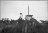 Man stående vid kanonrör på Djäkneberget, Västerås.