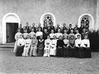 Västerfärnebo sn, Sala kn, Västerfärnebo. Konfirmander utanför Västerfärnebo kyrka, slutet av 1800-talet.