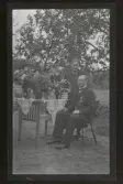 "Collmar (Sthlm, Äsköping)." Porträtt av en man som sitter vid ett bord fullt av gratulations-blommor.