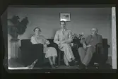 "Hildur Ekroth, Anders o Oskar Andersson." Tre syskon i varsin fåtölj.