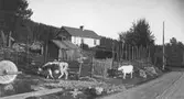 2 st vykort med motiv från byn Korsta. Fotografierna är tagna från gården Lövbacken norrut. Poststämplat 7/3 1907.