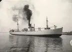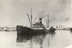 Foto i svartvitt visande passagerarturbinångfartyget Stavangerfjord i Köpenhamn under 1930-talet