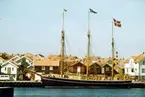 Enligt fotografens notering: "Ångbåten lägger till vid bryggan väster om Badholmarna år 1895. I bakgrunden Kålö med stuga och salteri".
