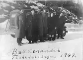 Tidningsartikel: "40,000 personer besökte lantbruksmötet i Varberg". Publicerad i Hallandsposten, 1945-06-11. Hallands Läns Biodlareförbunds stuga på Lantbruksmötet som hölls på Påskbergsvallen.