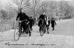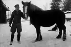 FYRA MÄN MED TVÅ HÄSTAR BILDTEXT:HÄSTAFFÄRER PÅ GÅNG