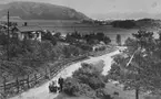 Tryckt text på vykortets framsida: "Uddevalla Badliv vid Skeppsviken".