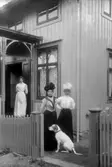 Gårdsinteriör med folk, Kungsgatan 5, Enköping, vy från sydöst, troligen 29 juli 1901