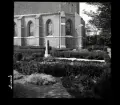 Blommor, kransar på grav. Lidingö kyrkogård. Fotografens anteckning på papperskopia i arkivet: "Emis. Fridas!"