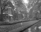 Tryckt text på kortet: "Uddevalla. Parti av Västerlånggatan." "J.F. Hallmans Bokhandel, Uddevalla .