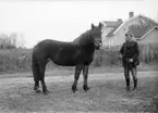 Enligt senare noteringar: "Avfotografering av äldre foto: större mangårdsbyggnad." (Himlen på glasplåten markerad med svart papper (glassidan)).