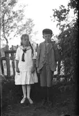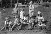 Från vänster Rut Dagmar, Astrid Eleonora, Ernst Ivar, Larsson ?, Kusin från Valbo Ture Jansson, Valborg Linnéa, Terecia Viktoria. Fem syskon Roxström i Åsmundshyttan nummer 4