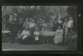 "Far 85 år." Grupporträtt av släkt och vänner vidfödelsedagsfirandet av Fredrik Vilhelm Eriksson.