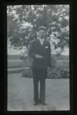 "Bror till Erik Hellkvist, Fogelstad." Konfirmationsporträtt av en ung man.