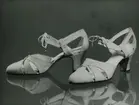 "Sommarskor". Sko i mocka, genombrutet mönster, knytband vid vristen.