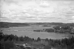 Herrborum fotograferat från Herrborums skär i Basteviken, Sankt Anna. Till vänster ses huvudbyggnadens östra gavel. Norr om denna ligger de bägge kvadratiska flyglarna från 1775.