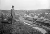 Enligt noteringar: Hamnen, taget vid gamla badhuset. Södra Hamngatan där nu bron binder i hop väg E6.