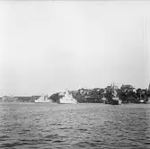 Den brittiska lätta kryssaren HMS COMUS fotograferad på Strömmen i Stockholm vid flottbesök i slutet av juli 1929