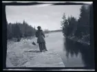 Porträtt av ett par, utomhus vid en sjö.