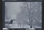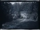 "Bergåsa skogvaktarbostad" Ett litet barn sitter i en barnvagn som står trädgårdsgången fram till ett hus.