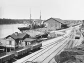 Hamnen där man lastar och lossar. Stationen öppnad 1877 01 01.