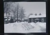 Elsa och Gudrun med en hund, bland vitsippor på tomten till familjen Morthensens villa Solveden, Djursholm.