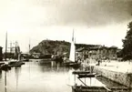 Tryckt text på kortet: "Ångbåtsbryggan, Lysekil".