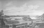 Enligt senare noteringar: "Munkedals stationssamhälle från Kvistrumsberget. Oscar Färdigs nya hus, byggt 1918, finns med. Dock är inte Hanssons nya affär byggd. Den tillkom 1926." (BJ)