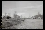 Fotografen har stått i "Målars" trädgård. I bakgrunden ekonomibyggnaderna på Lenninge 6 (nuvarande Lenninge 8:1) tillhöriga herrgården, uppbyggda ca 1919. Den lilla ljusa kuren till vänster vid järnvägen är stationshuset, "anhalten" kallad.