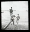 En grupp ungdomar på sandstrand.