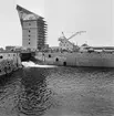 Bilden visar ångslupen Imperartor liggande i en docka i Karlskrona med en stor skada på styrbordssidan