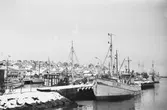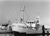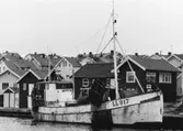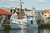En moptorbåt vid huvudkajen i Råå fiskeläge