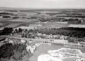 Banbyggnad Inlandsbanan. Vaimats grusgrop. Från vänster:: Tågexpedition 2 små baracker Markitenteriet 2 stora baracker Vattentornet Längst till vänster badhuset