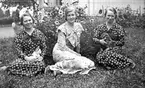 Knytkalaset 5 juli 1965. Två jubileumsvärdinnor med varsin kattunge. Publik i bakgrunden.