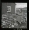 Pojken Lars-Anders med sin mamma Margareta Utsi (f. Nutti). Vaisaluokta i Jokkmokks socken.
