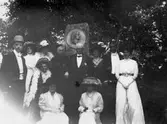 Album. Nils Lejons samling. Texten på stenen: GRUNDSTEN Lagd den 23 Mars 1928.