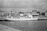Vykort med motiv av båten Dufvan med passagerare i Sundsvall.