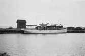 Vykort med motiv över hamnen och passagarerartrafiken i Sundsvall.