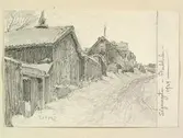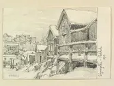 "Sågaregatan, Stockholm 1924", Södermalm.Teckning av Ferdinand Boberg.
