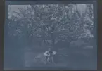 Sven Morthensen (senare Otterbeck) sitter och läser utomhus lutad mot ett träd på familjens tomt. Vitsippor blommar och bredvid honom ligger en hund.