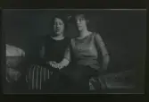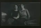 "Fogelstad" Två kvinnor sitter tätt i en soffa och håller varandra i handen.
