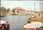 Enligt Bengt Lundins noteringar: "Lyckorna. Ångbåtsbryggan och badhuset. Motorbåt".