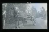 "Sommarflicka vid Rosenlund." Ung kvinna kör häst och vagn.