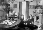 Lenninge 1:8. Vid bordet Anna Norelius och okänd kvinna. Dottern Anna Thorséen serverar kaffet.