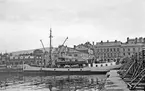 A B Forsviks bruks fartyg "Neptun" vid sågens lastbrygga omkr 1910. Skeppare var Carl Johan Johansson. Båten såldes senare som starbåt.