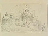 "Blecktornet 10/12 1917" Stockholm, Södermalm Kv. Kålroten 7, Södermannagat. 29, Blecktornet. Teckning av Ferdinand Boberg. Stora Blecktornet var Ferdinand Boberg och hustrun Annas hem från 1928, då de erbjöds hyra byggnaden av Stockholms stad.