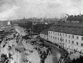 Spårvagnarnas sista tur. Avskedsfest vid lokstallarna. 19 oktober 1952. Reinhold Blixt.
