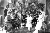 Hos "Erik-Lars", W. Hästbo. Stående till höger Betty Eriksson (Josefs syster). Sittande i soffan med tidningen Enok Eriksson, Åsmundshyttan.