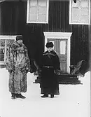 Ateljéporträtt av vinterklädd ung kvinna med pälsmössa, -boa och -muff. Troligen någon av Mathilda Ranchs vänner eller släktingar.