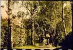 Skioptikonbild med motiv från palatset i Ahlambra. Bilden har förvarats i kartong märkt: Höstresan 1910. Alhambra 9. N:20. Text på bild: "Alhambra. Mor myrtengården".